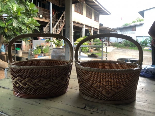 จำหน่่ายสินค้าจากชุมชน ตะกร้าหวายเทียม ขันโตก แก้วเยติจากหว่ายเทียม